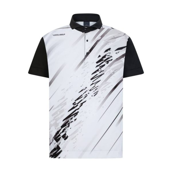 Elevate your golf game with the Aguila Golf Black and White Abstract Performance Polo Shirt, a perfect fusion of modern design and high functionality. This polo showcases a dynamic abstract print with bold black and white streaks, creating a sleek and contemporary look. Crafted from advanced moisture-wicking fabric, it ensures you stay cool and dry during every swing, while the black polo collar and three-button placket add a sharp, professional touch. The white Aguila Golf text logo on the left chest provides a subtle branded accent. Designed with a tailored fit and breathable material, this short-sleeve polo offers exceptional comfort and unrestricted movement, making it ideal for both casual rounds and competitive play.