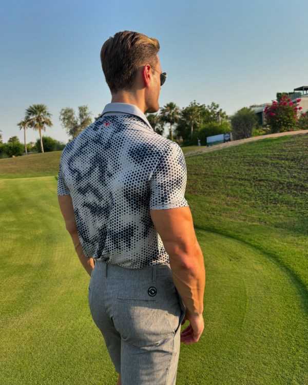 Be the first to review “Moderno Pixel Comb Light Grey Men’s Golf Polo”