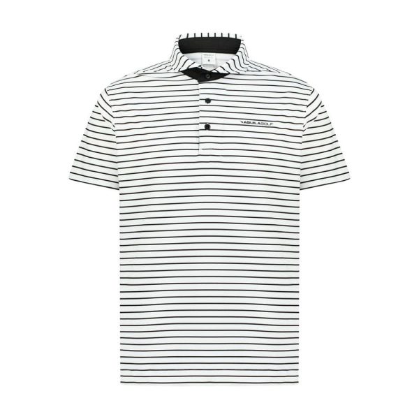 Aguila Golf White and Black Striped Performance Polo Shirt